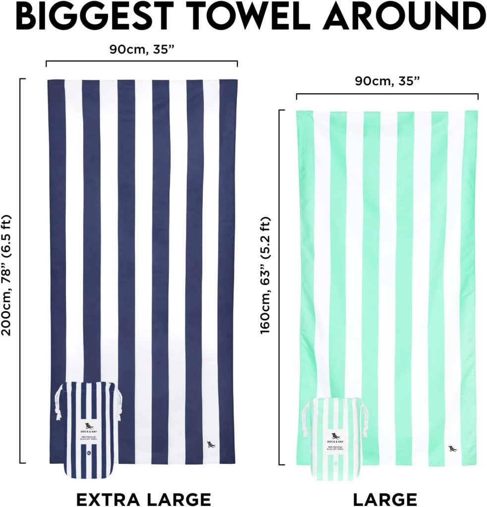 Dock & Bay Beach Towel – for Travel, Swimming, Camping, Holiday – Super Absorbent, Quick Dry, Sand Free – Compact, Lightweight – 100% Recycled Materials – Includes Bag